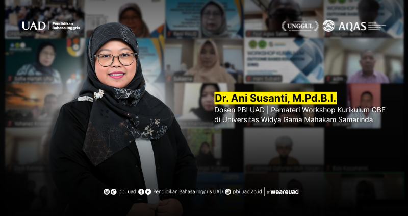 Dosen Program Studi Pendidikan Bahasa Inggris (PBI) Universitas Ahmad Dahlan (UAD), Dr. Ani Susanti, M.Pd.B.I., menjadi pemateri dalam Workshop Revitalisasi Kurikulum Berbasis Outcome-Based Education (OBE) yang diselenggarakan oleh Fakultas Keguruan dan Ilmu Pendidikan (FKIP) Universitas Widya Gama Mahakam Samarinda pada 22–23 Oktober 2025.